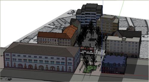 Am Ende stand als Ergebnis das fertige Modell mit Inventar, Verschattung und der möglichst genauen Darstellung des Platzes.