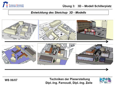 Erkentnisse aus der Übung sind Grundlagen im Umgang mit einem 3D-Programm wie SketchUp und auch Übung der Erfassung und Wiedergabe von Raumzusammenhängen. Alles in allem die anspruchsvollste aber auch interessanteste Übung in diesem Semester.